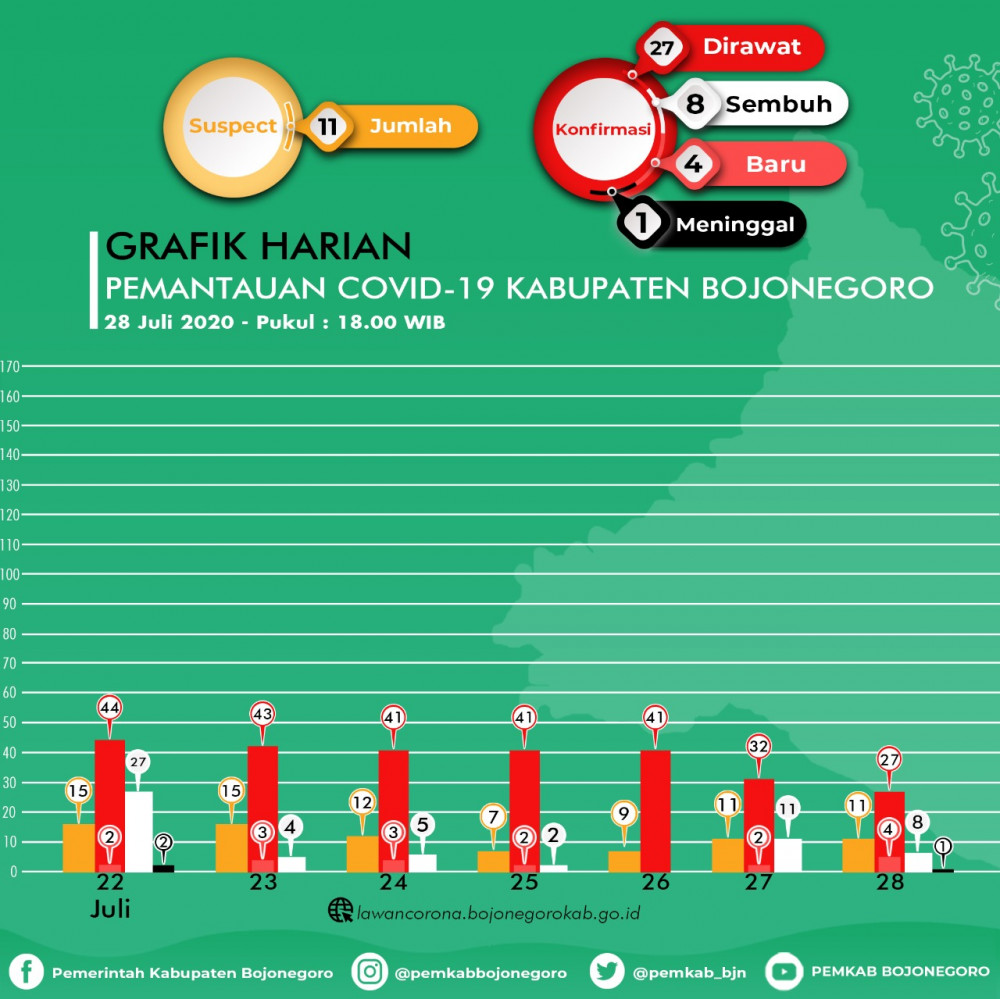 Update Corona Bojonegoro 28 Juli: Suspect 11, Confirm 239, Dirawat 27, Sembuh 187, Meninggal 25