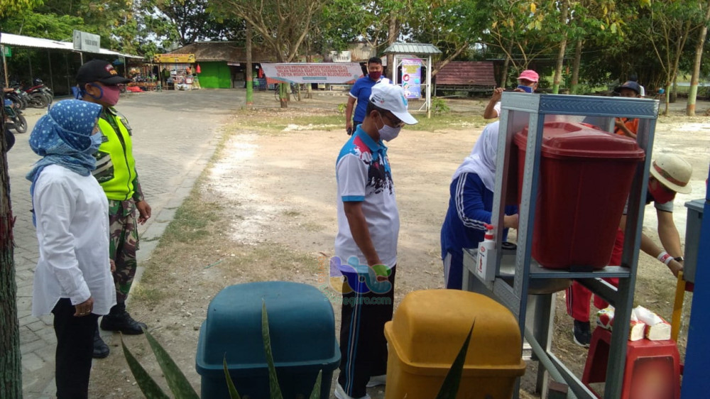 Bojonegoro - Pemerintah Kabupaten (Pemkab) Bojonegoro melalui Dinas Kebudayaan Dan Pariwisata (Disbudpar) Bojonegoro bersama Sat Lantas Polres Bojonegoro, pada Jumat (07/08/2020), menggelar simulasi pembukaan objek wisata dengan protokoler kesehatan Covid-19, di objek wisata Agrowisata Belimbing di Desa Ngringinrejo Kecamatan Kalitidu Kabupaten Bojonegoro.