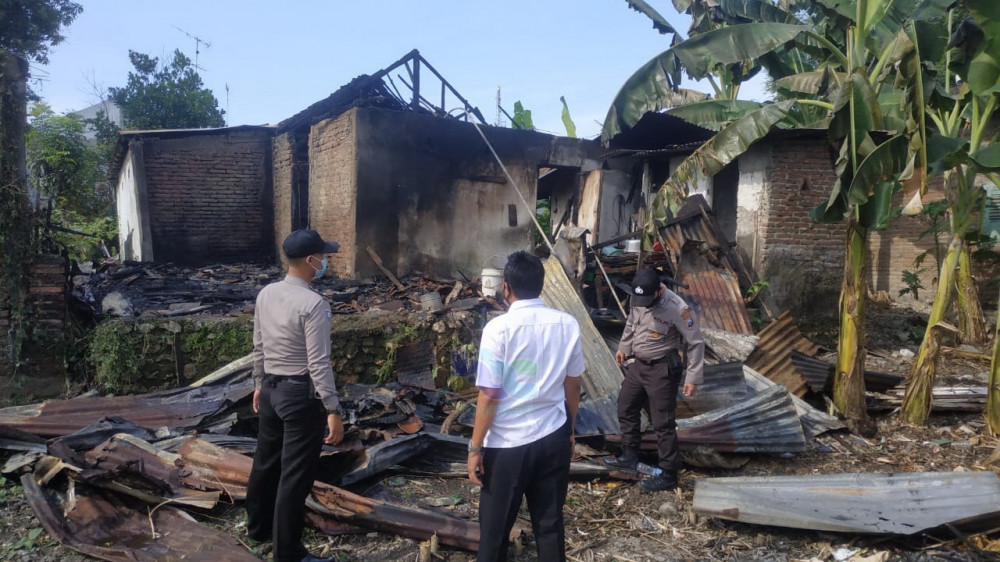 Petugas saat melakukan olah TKP, kebakaran rumah milik Supardi (52), warga Jalan Dr Sutomo Gang Wates, Kelurahan Sumbang Kecamatan Bojonegoro Kota. Senin (10/08/2020)
