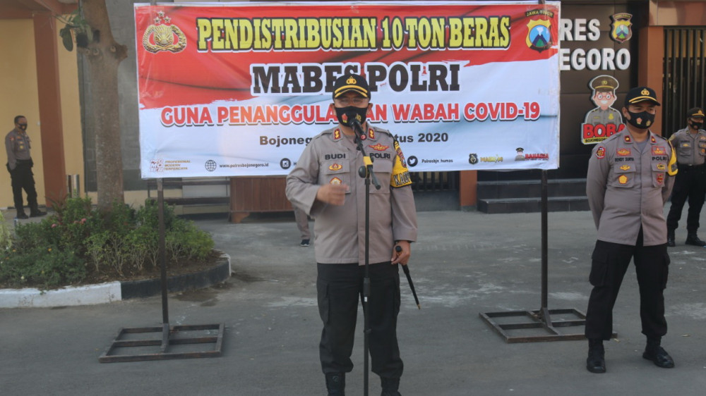 Kapolres AKBP M Budi Hendrawan mengatakan bahwa guna membantu warga masyarakat kurang mampu di wilayah Kabupaten Bojonegoro yang terdampak pandemi Virus Corona (Covid-19), Mabes Polri kembali memberikan bantuan berupa beras sebanyak 10 ton kepada Polres Bojonegoro, yang selanjutnya akan disalurkan kepada masyarakat yang sudah terdata oleh para Bhabinkamtibmas Polsek jajaran.