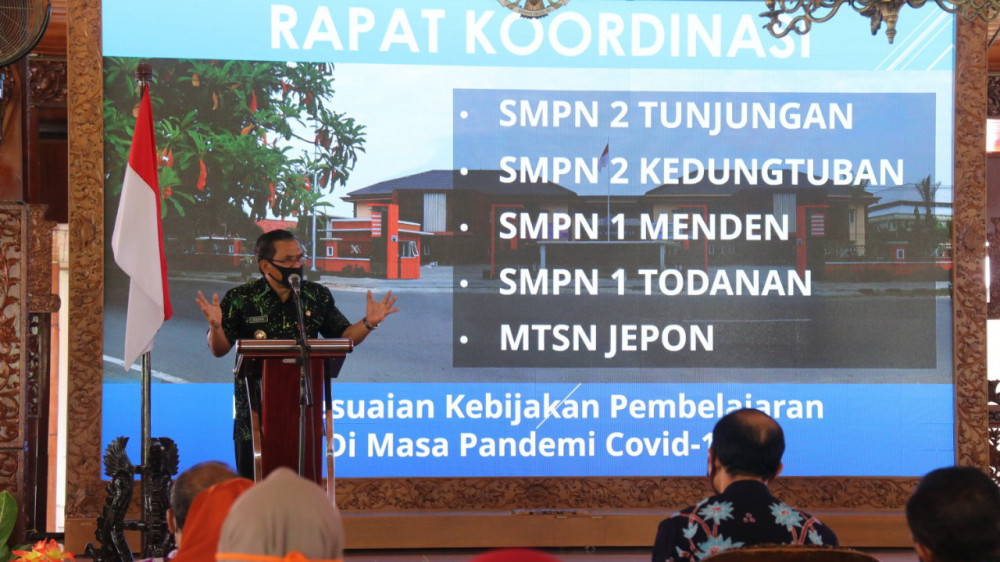 Kepala Dinas Pendidikan, Hendi Purnomo SSTP MA, dalam sambutannya menyampaikan bahwa pihaknya akan memilih jalan tengah dengan menunjuk masing-masing satu sekolah tingkat SLTP di wilayah eks Kawedanan, dan 1 MTs yang ada Kabupaten Blora, yang akan dijadikan pilot project untuk uji coba pembelajaran tatap muka. Namun demikian, pihaknya belum bisa menyebut kapan tanggal dimulainya pembelajaran tatap muka.