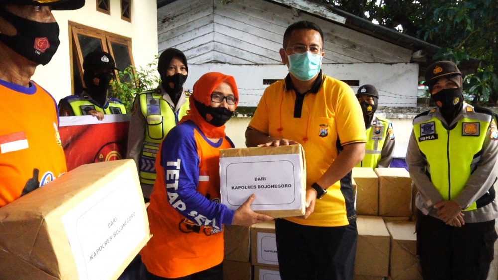 Kapolres Bojonegoro, AKBP M Budi Hendrawan SIK MH, saat saat beri bingkisan kepada purnawirawan dan warakawuri, Sabtu (15/08/2020)