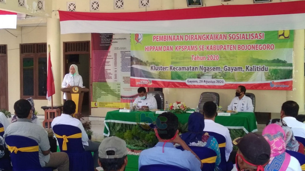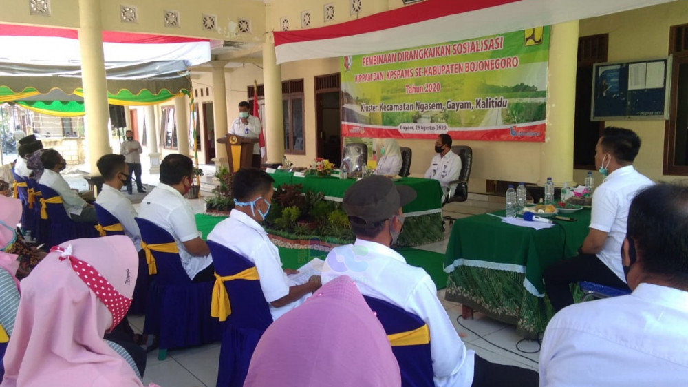 Bojonegoro - Sebagai upaya untuk mengatasi krisis air bersih atau air minum bagi sebagian desa atau masyarakt di Kabupaten Bojonegoro, Pemerintah Kabupaten Bojonegoro melalui melalui Dinas Perumahan, Kawasan Permukiman dan Cipta Karya Kabupaten Bojonegoro, pada Selasa (25/08/2020), menggelar kegiatan Pembinaan dan Sosialisasi Himpunan Penduduk Pemakai Air Minum (HIPPAM) untuk wilayah Kecamatan Ngasem, Gayam, dan Kecamatan Kalitidu.