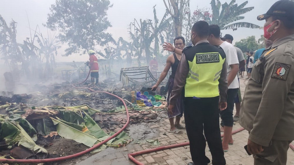 "Namun karena api semakin membesar dan dinding rumah milik Surati terbuat dari anyaman bambu sehingga api dengan cepat menghanguskan rmah milik Surati yang kemudian merempet ke rumah milik Ngasmi, yang berada di samping kiri rumah milik Surati, dan juga merembet ke Pos Kamling yang berada di sebelah kanannya." kata Kapolsek.