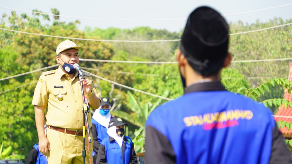 Wakil Bupati Blora, H Arief Rohman MSi, saat hadiri kegiatan penutupan KKN Mahsiswa di Kampus II STAI Al-Muhammad di Kecamatan Sambong, Blora. Senin (31/08/2020)