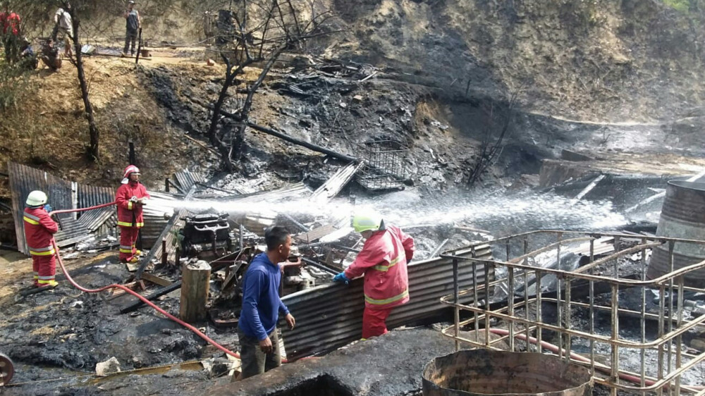 Mengetahui kejadian tersebut, selanjutnya saksi bersama para penambang lainnya berusaha memadamkan kobaran api dengan peralatan seadanya, namun kobaran api telah membakar 3 unit mesin rakitan dan sejumlah barang yang ada di loksi penamanbangan minyak tradisional tersebut.
