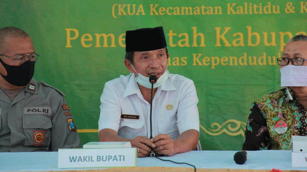 Wakil Bupati Bojonegoro, Drs Budi Irawanto Mpd, saat hadiri pelaksanaan Sidang Itsbat Nikah Terpadu di Pendapa Kantor Kecamatan Kalitidu Kabupaten Bojonegoro. Jumat (04/09/2020)