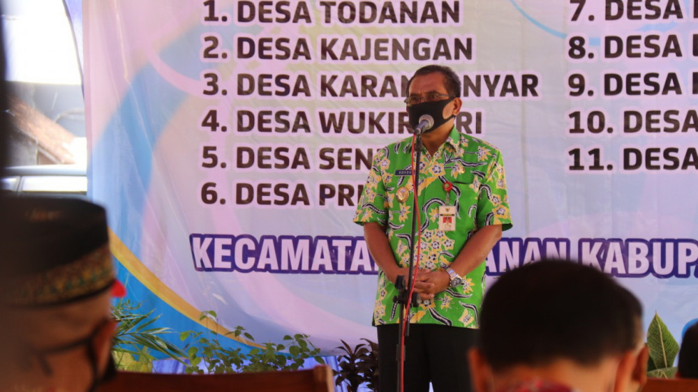 Bupati Djoko Nugroho saat beri sambutan dalam peresmian 11 Kampung KB di 11 desa wilayah Kecamatan Todanan Kabupaten Blora. Kamis (10/09/2020)