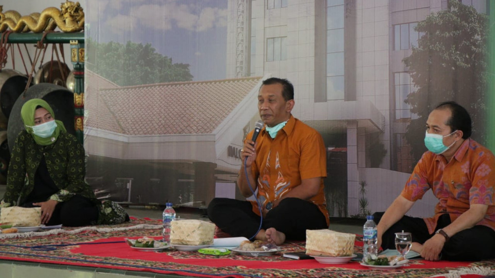 Kepala Disdik Kabupaten Bojonegoro, Dandy Suprayitno AP MSi, saat beri sambutan dalam acara 'Cangkruk Bersama Buke' di Pendapa Malowopati Pemkab Bojonegoro. Sabtu (12/09/2020)