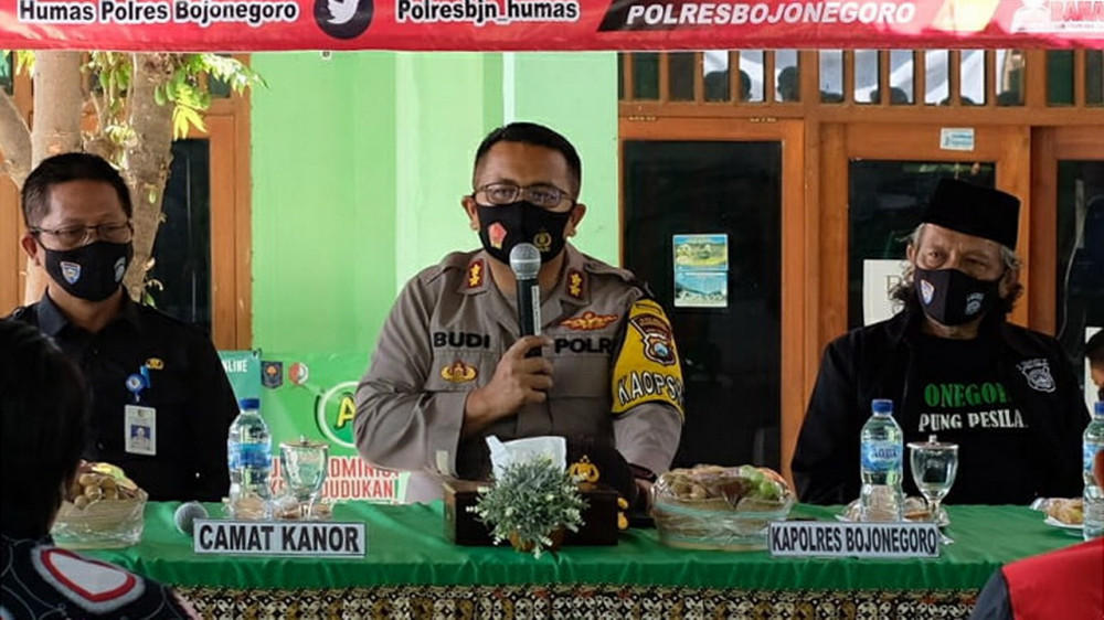 “Mari bersama kita jaga keamanan Kabupaten Bojonegoro. Jangan mudah terhasut dan terprovokasi oleh informasi yang belum jelas kebenarannya di media sosial.” kata AKBP M Budi Hendrawan.