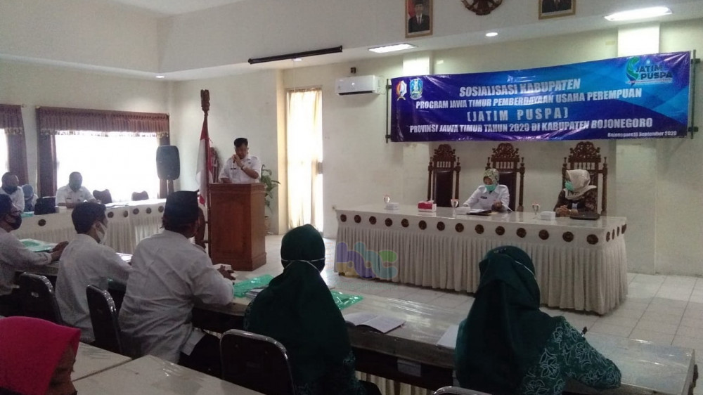Bojongeoro - Pemerintah Kabupaten (Pemkab) Bojonegoro melalui Dinas Pemberdayaan Masyarakat dan Desa (DMPD) Kabupaten Bojonegoro, menggelar sosialisasi Program Jatim Puspa atau Jawa Timur Pemberdayaan Usaha Perempuan.