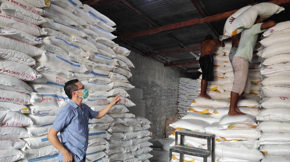 Aktivitas para pekerja di salah satu gudang Toko Purnomo Bojonegoro. Sabtu (19/09/2020)
