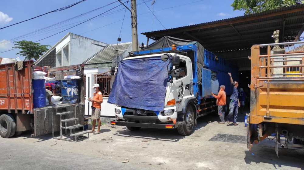Aktivitas para pekerja Toko Purnomo Bojonegoro, saat bersiap-siap untuk mengantarkan kiriman barang pesanan para pelanggan atau pembeli. Sabtu (19/09/2020)