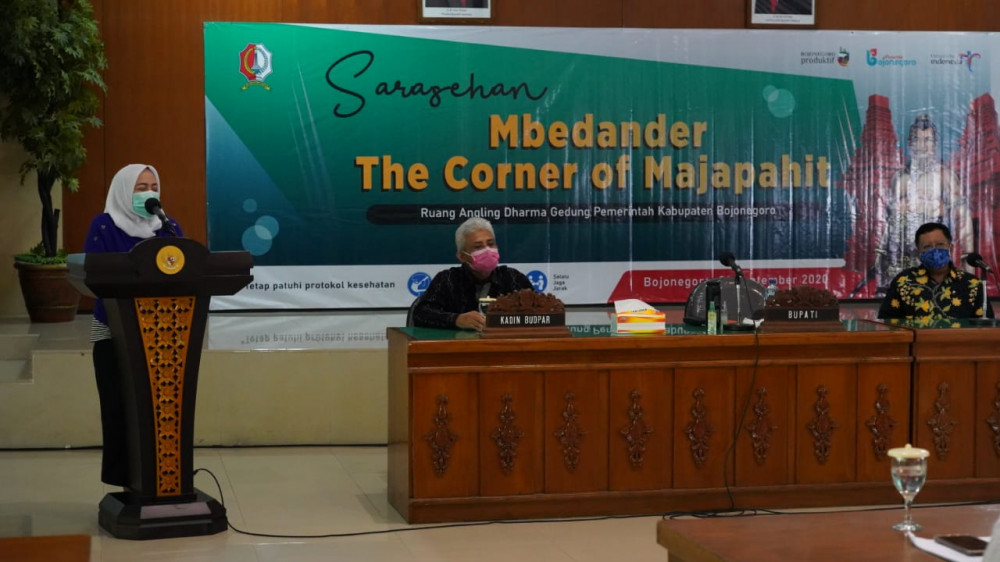 Bojonegoro - Pemerintah Kabupaten (Pemkab) Bojonegoro, melalui Dinas Kebudayaan dan Pariwisata (Disbudpar) Kabupaten Bojonegoro, pada Sabtu (26/09/2020) pagi, menggelar sarasehan dengan tema 'Mbedander The Corner of Majapahit'.