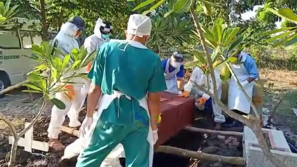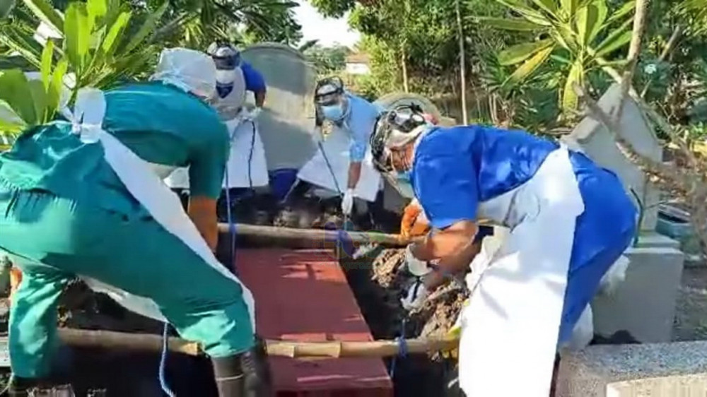 Prosesi pemakamam jenazah tenaga kesehatan RSUD dr R Sosodoro Bojonegoro, di tempat pemakaman umum Kelurahan Ngroworejo Kecamatan Bojonegoro Kota. Rabu (30/09/2020).