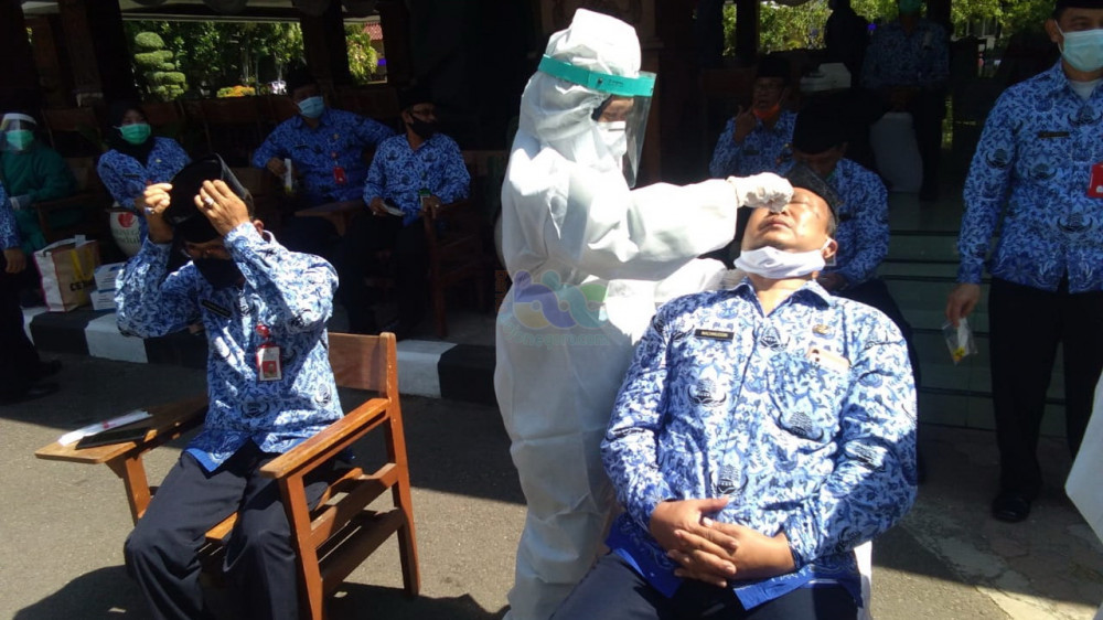 Bojonegoro - Sebagai upaya deteksi dini (screening) dan dalam rangka pencegahan penyebaran virus Corona (Covid-19) khususnya bagi aparatur sipil negara (ASN) di lingkungan Pemerintah Kabupaten (Pemkab) Bojonegoro, pada Kamis (01/10/2020) pagi, Pemkab Bojonegoro, melalui Dinas Kesehatan (Dinkes) Kabupaten Bojonegoro, menggelar swab test dan tes cepat molekular (TCM), terhadap pejabat eselon II, Kepala Organisasi Perangkat Daerah (OPD), dan juga Kepala Bagian di lingkup Pemkab Bojonegoro.