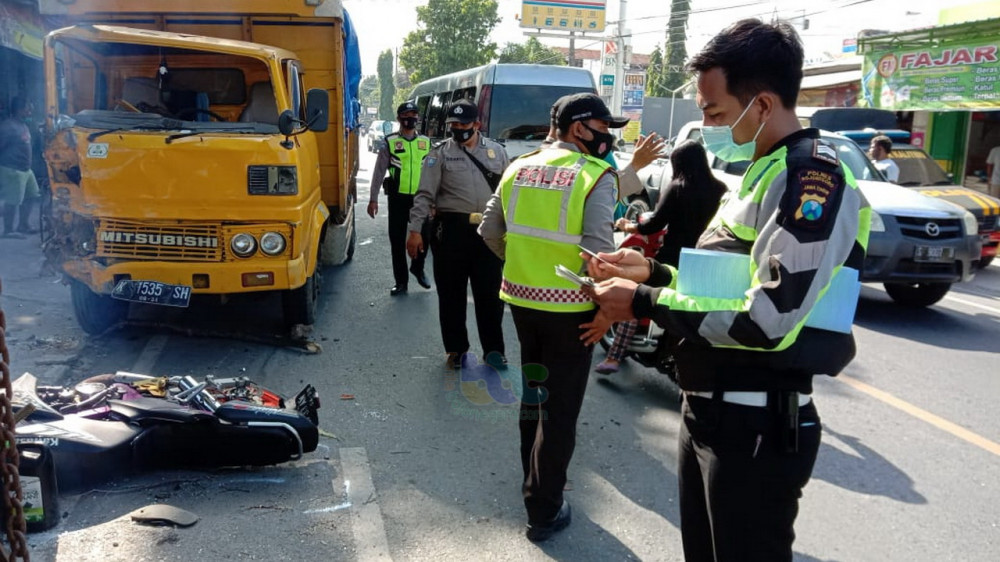 "Karena jarak sudah dekat dan pengemudi truk kurang hati hati saat mendahului, sehingga terjadi laka lantas tersebut," kata Ipda Luluk Sulistiono SH.