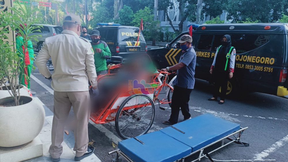 Bojonegoro - Seorang kakek bernama Rochmad (88), yang tercatat sebagai penduduk Kelurahan Ledok Wetan RT 006 RW 002 Kecamatan Bojonegoro Kota, yang berprofesi sebagai tukang becak, pada Senin (05/10/2020) sekira puku 07.15 WIB, ditemukan meninggal dunia di atas becak miliknya, di pinggir Jalan Mas Tumapel, tepatnya di depan Gedung Pemerintah Kabupaten Bojonegoro.