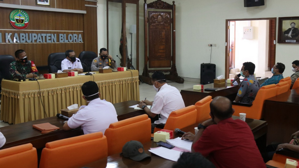 Blora - Bupati Blora, Djoko Nugroho didampingi Kapolres Blora, AKBP Ferry Irawan SIK, dan Dandim Blora, Letkol Inf Ali Mahmudi, pada Rabu (07/10/2020) menerima audiensi Serikat Pekerja Kontrak Pertamina (SPKP) Cepu, terkait tindak lanjut penyelesian hak buruh, setelah PT Geo Cepu Indonesia (GCI) dinyatakan pailit.
