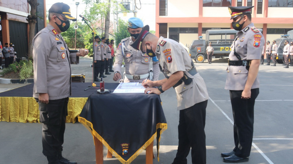 Kapolres AKBP M Budi Hendrawan dalam amanatnya menyampaikan bahwa mutasi jabatan adalah hal yang biasa dan wajar terjadi dalam lingkungan Polri. Hal ini sebagai bentuk penyegaran dan untuk menciptakan suasana lingkungan kerja baru bagi penjabat yang bersangkutan.