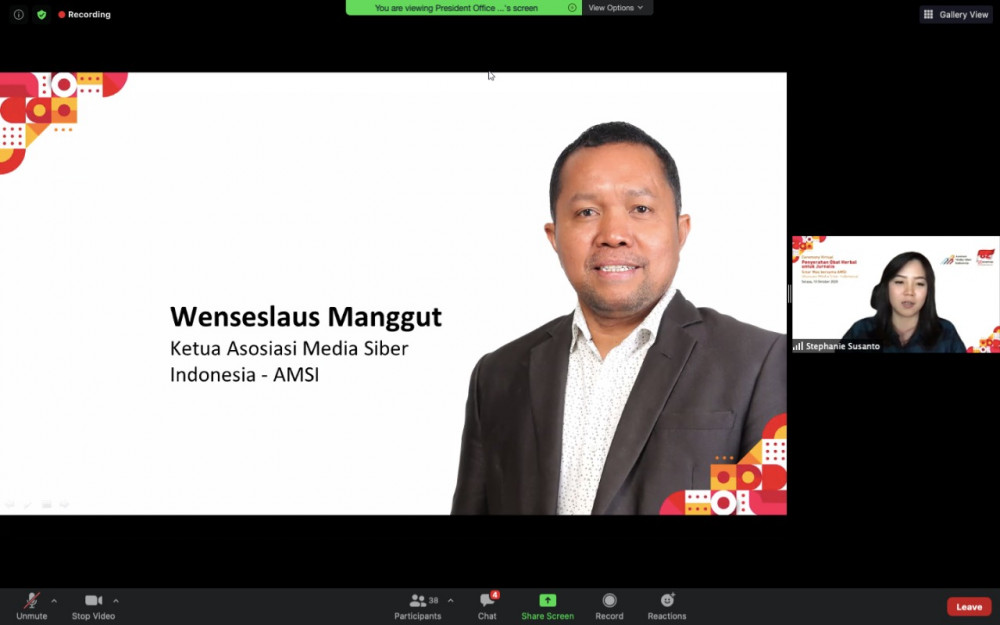 Ketua AMSI Wenseslaus Manggut, saat ikuti acara Penyerahan Obat Herbal untuk Jurnalis dari Sinar Mas kepada anggota AMSI secara virtual. Selasa (13/10/2020)