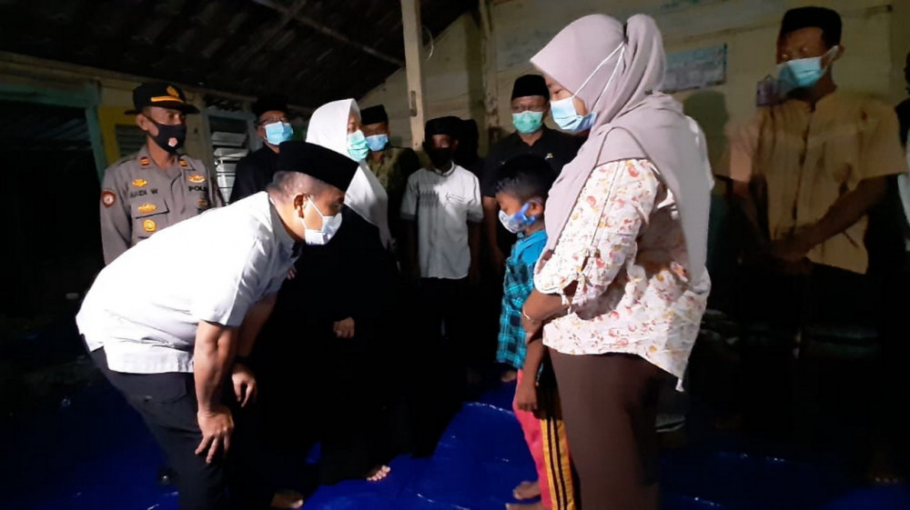 Bojonegoro - Forum Komunikasi Pimpinan Daerah (Forkompimda) Kabupaten Bojonegoro, pada Selasa (13/10/2020) malam, menyempatkan diri takziah atau mengunjungi rumah keluarga korban meninggal dunia akibat tersengat aliran listrik jebakan tikus di area pesawahan di Kecamatan Kanor Kabupaten Bojonegoro. Senin (12/10/2020) pagi.