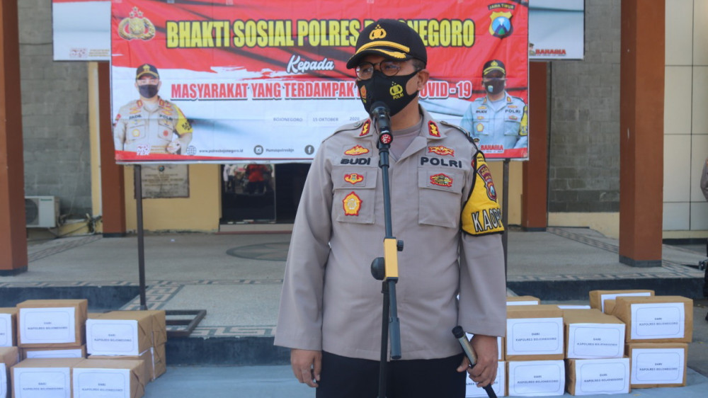 Bojonegoro - Kapolres Bojonegoro, M Budi Hendrawan SIK MH, pada Kamis (15/10/2020), masih terus peduli pada warga masyarakat yang kurang mampu yang terdampak pandemi Covid-19, salah satunya para marbot masjid di Bojonegoro.