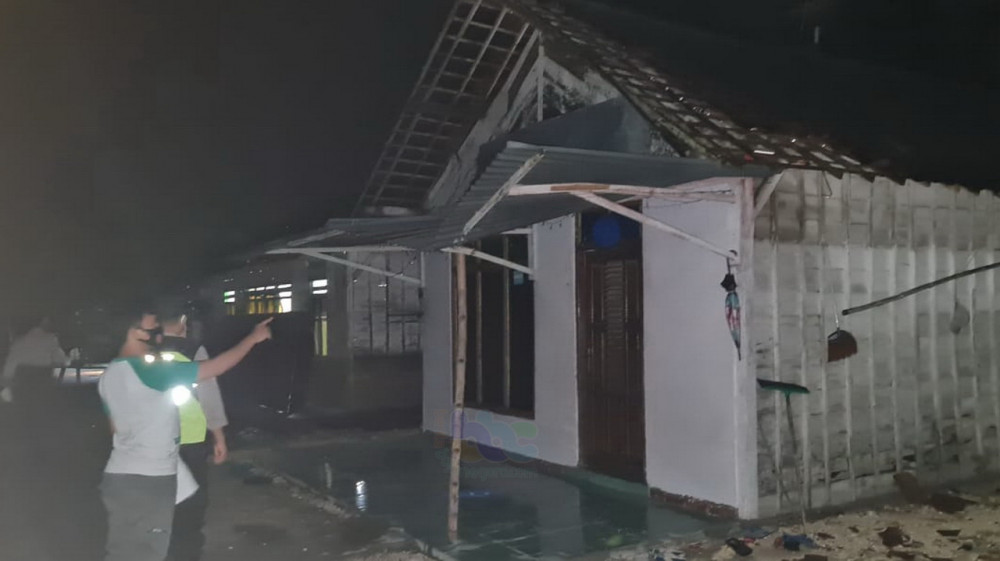 Aparat saat lakukan olah TKP, peristiwa angin kencang yang merusakkan rumah warga Dusun Megal Desa Kedungrejo Kecamatan Sumberrejo Kabupaten Bojonegoro. Kamis (15/10/2020) malam.