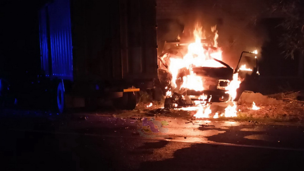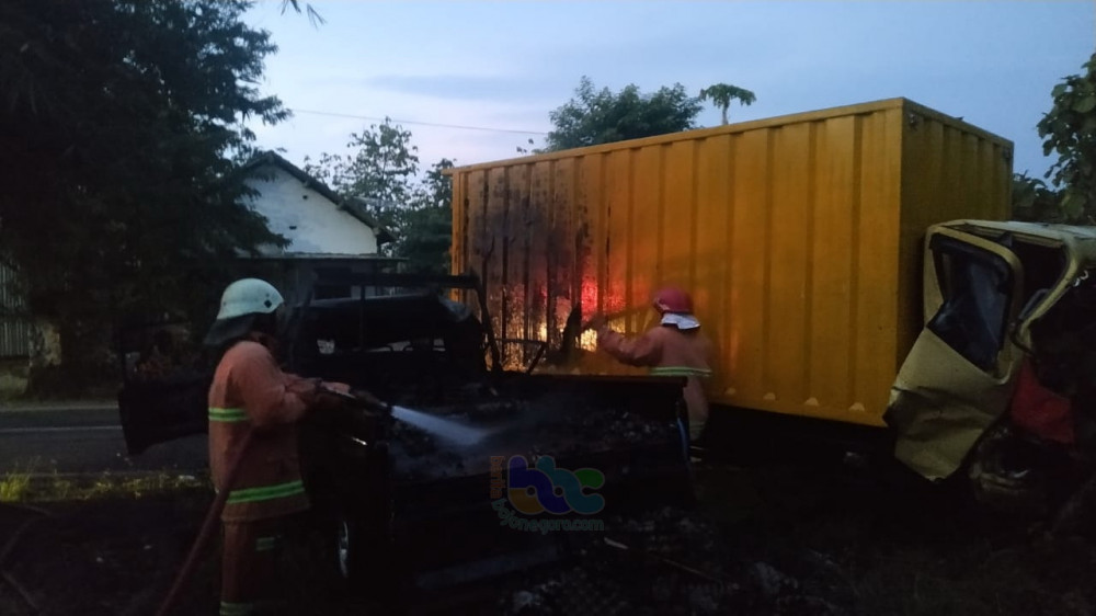 Setelah terjadi tabrakan, muncul kobaran api pada kendaraan Mitsubishi L300 pikap nomor polisi AG 9371 PC, yang apinya kemudia membesar dam membakar mobil pikap tersebut, hingga hangus terbakar.