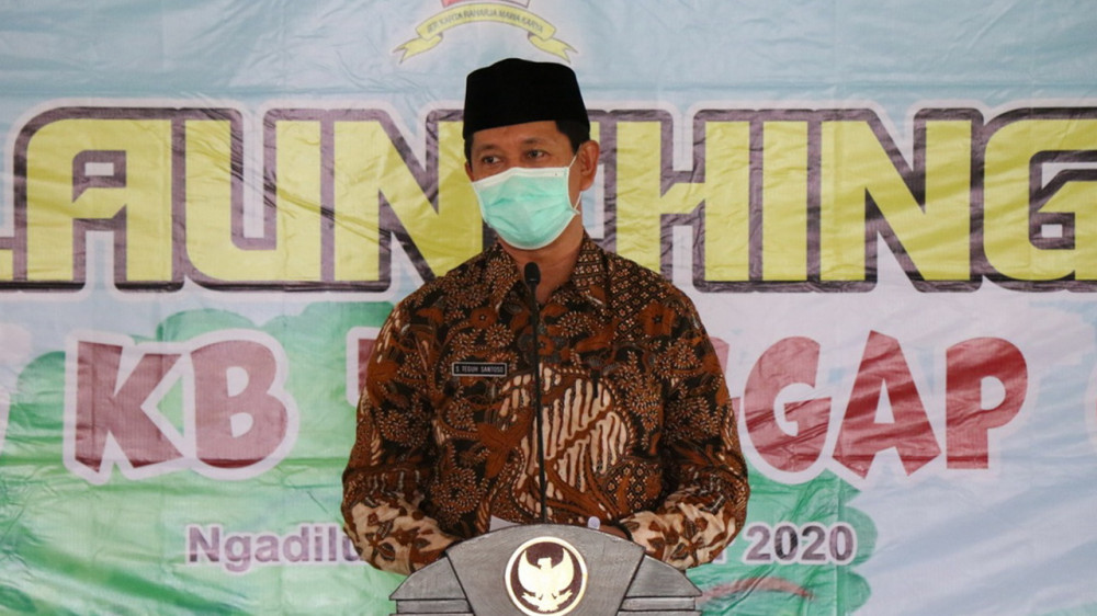 Kepala Perwakilan BKKBN Jatim, Drs Sukaryo Teguh Santoso MPd, saat beri sambutan dalam acara launching Pencanangan Kampung KB Tanggap Covid-19, di Desa Ngadiluhur Kecamatan Balen Bojonegoro. Minggu (18/10/2020)