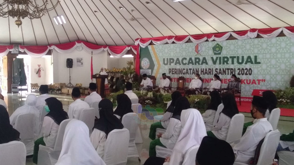 Upacara peringatan Hari Santri Nasional (HSN) tingkat Kabupaten Bojonegoro, yang digelar secara virtual di Pendapa Malowopati Pemkab Bojonegoro. Kamis (22/10/2020)