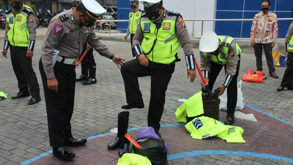 Bojonegoro - Jelang libur panjang (long weekend) peringatan Maulid Nabi Muhammad SAW, yang jatuh pada tanggal 29 Oktober 2020, sekaligus guna mengantisipasi datangnya musim penghujan, jajaran Satuan Lalu-lintas (Sat Lantas) Polres Bojonegoro, pada Jumat (23/10/2020) pagi, menggelar Apel Pengecekan Kesiapan anggota berikut perlengkapannya.