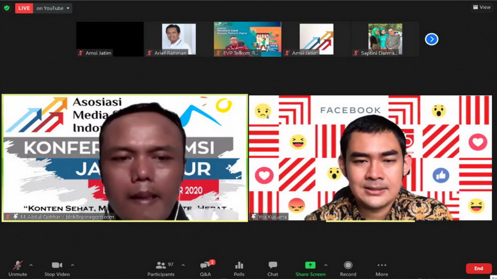 Webinar bertema Memahami Aspek Ekonomi Platform Digital, yang digelar AMSI Jatim. Jumat (23/10/2020).