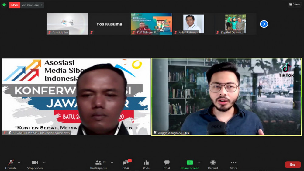 Hal tersebut disampaikan Head of User and Content Operations of TikTok Indonesia, Angga Anugrah Putra, dalam acara webinar bertema Memahami Aspek Ekonomi Platform Digital, yang digelar dalam rangka Konferensi Wilayah (Konferwil) Asosiasi Media Siber Indonesia (AMSI) Jawa Timur, Jumat (23/10/2020).