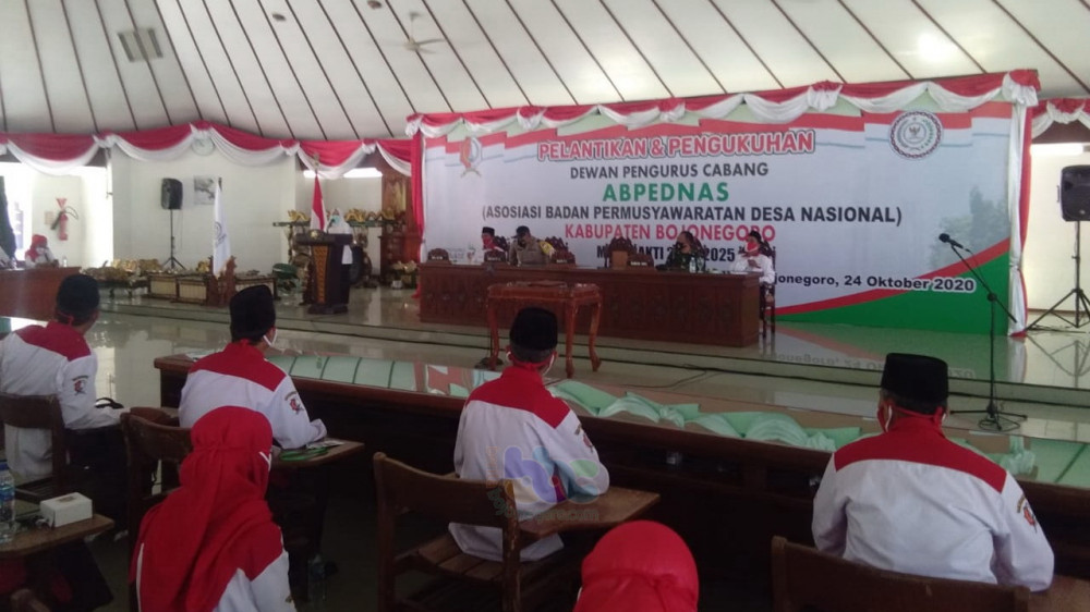 Bojonegoro - Bupati Bojonegoro, Dr Hj Anna Muawanah, pada Sabtu (24/10/2020) laksanakan Pelantikan dan Pengukuhan, Dewan Pengurus Cabang Asosiasi Badan Permusyawaratan Desa Nasional (ABPEDNAS) Kabupaten Bojonegoro), masa bakti 2020-2025.