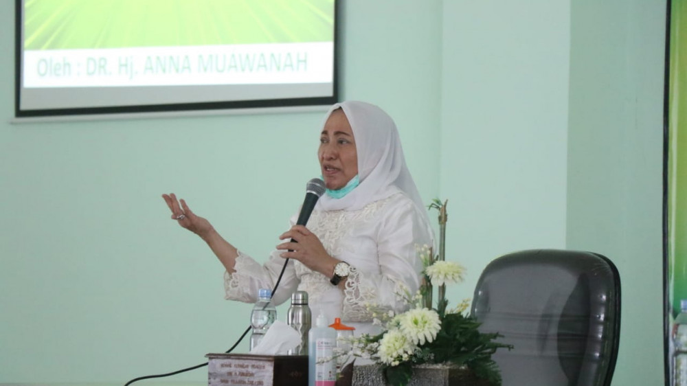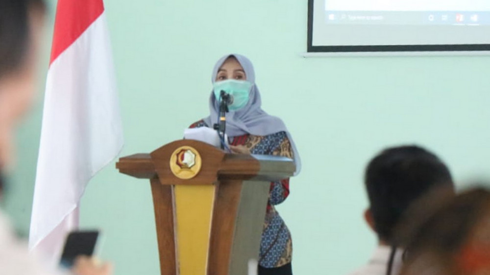 Bupati Bojonegoro, Dr Hj Anna Muawanah, saat beri sambutan dalam acara Temu Mitra' dengan tema Sinergitas Pemerintah, Swasta dan Masyarakat dalam Kesempatan Berusaha. Sabtu (24/10/2020)