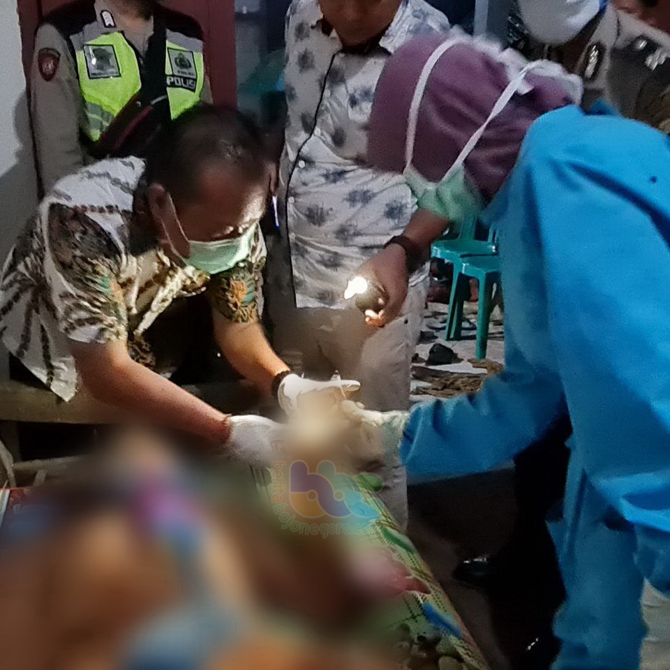 Petugas saat lakukan identifikasi mayat Malik (63) warga Desa Sumberharjo Kecamatan Sumberrejo Kabupaten Bojonegoro, yang meninggal dunia akibat tersengat listrik Selasa (27/10/2020)
