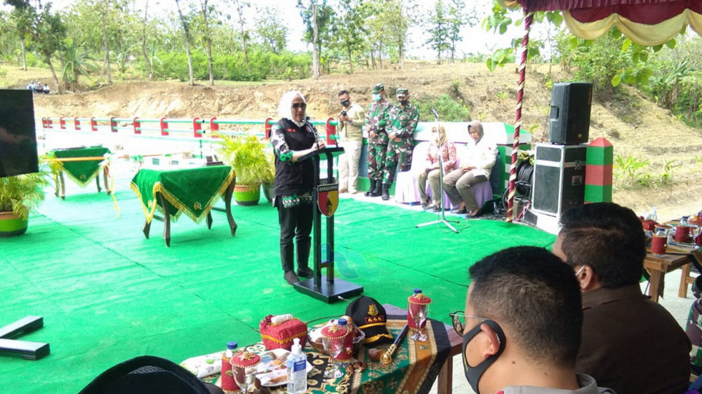 Bupati Bojonegoro, Dr Hj Anna Muawanah, saat beri sambutan dalam peresmian jembatan Clebung, di Kecamatan Bubulan Kabupaten Bojonegoro. Minggu (01/11/2020)