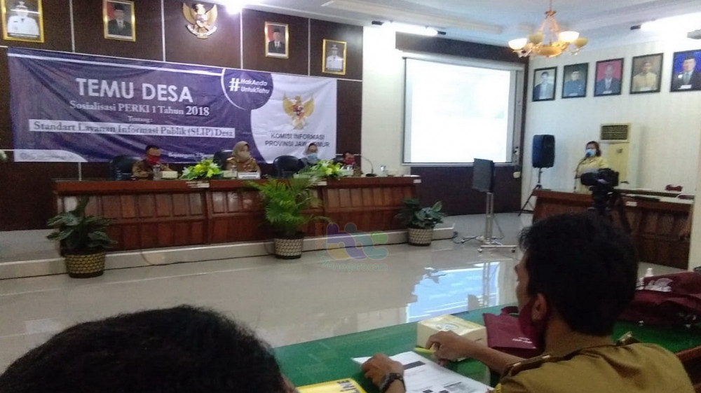 Bojonegoro - Komisi Informasi Provinsi Jawa Timur (KI Jatim) pada Senin (02/11/2020) sosialisasikan Peraturan Komisi Informasi Nomor 1 Tahun 2018, tentang Standar Layanan Informasi Publik (SLIP) Desa, kepada pemerintah desa di Bojonegoro.