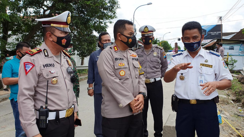 Bojonegoro - Kapolres Bojonegoro, AKBP M Budi Hendrawan SIK MH, didampingi Kasat Lantas Polres Bojonegoro, Dinas Perhubungan (Dishub) Kabupaten Bojonegoro dan Tuban, Dinas Pekerjaan Umum Bina Marga dan Penataan Ruang (PUPR) Kabupaten Bojonegoro dan Tuban, pada Sesala (03/11/2020) siang, laksanakan pemantauan atau pengecekan kondisi Jembatan Glendeng, yang alami kerusakan pada tembok penahannya yang retak.