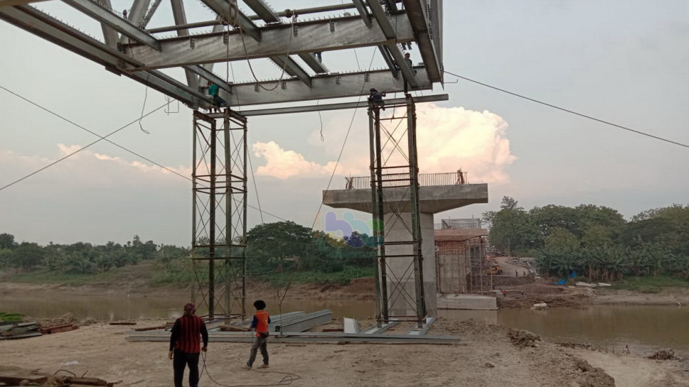"Hingga Nopember ini progresnya mencapai sekitar 80 persen. Meliputi pemasangan segmen gelagar baja sisi barat dan timur, di mana segmen timur dan barat masing-masing sudah terpasang 1 segmen," kata Wardi. Kamis (12/11/2020)