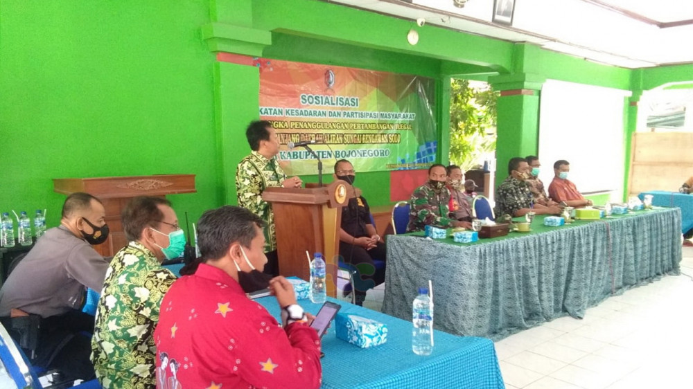Bojonegoro - Pemerintah Kabupaten (Pemkab) Bojonegoro melalui Bagian Sumber Daya Alam (SDA) Setda Pemkab Bojonegoro pada Kamis (12/11/2020) Gelar Sosialisasi terkait Peningkatan Kesadaran dan Partisipasi Masyarakat Dalam Rangka Penanggulangan Pertambangan Ilegal di Sepanjang Daerah Aliran Sungai Bengawan Solo di Kabupaten Bojonegoro.