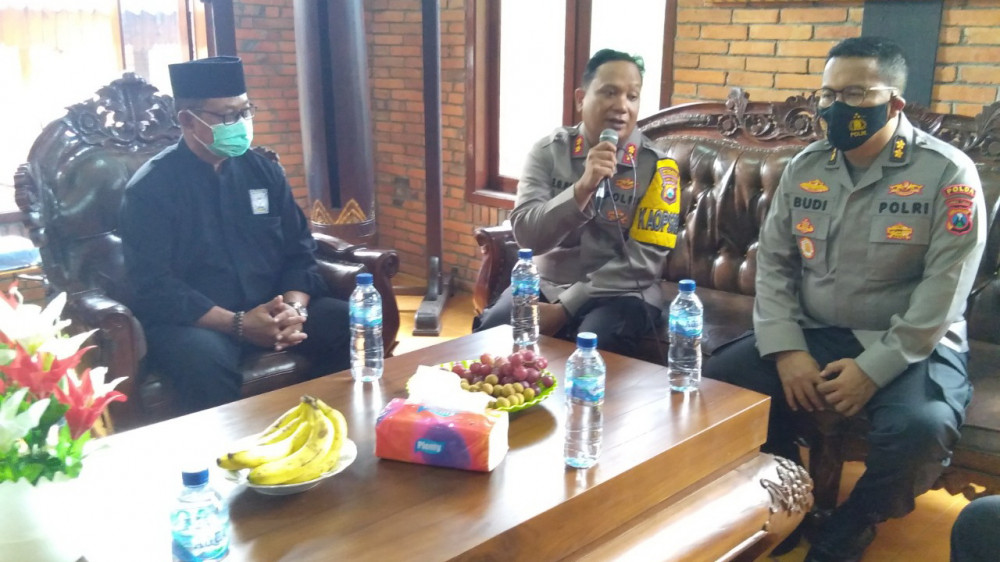 Kapolres Bojonegoro, AKBP Eva Guna Pandia didampingi pejabat Kapolres Bojonegoro yang lama, AKBP MBudi Hendrawan, saat berkunjung ke tokoh agama dan tokoh masyarakat di Bojonegoro. Rabu (25/11/2020)