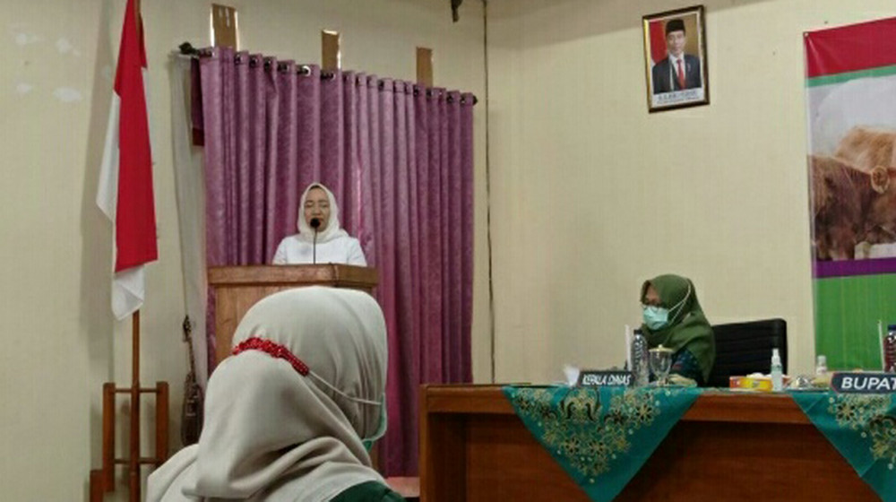 Bupati Bojonegoro Dr Hj Anna Muawanah, saat beri sambutan dalam acara Workshop Tehknologi Reproduksi, di Aula Dinas Peternakan dan Perikanan Kabupaten Bojonegoro. Sabtu (28/11/2020)