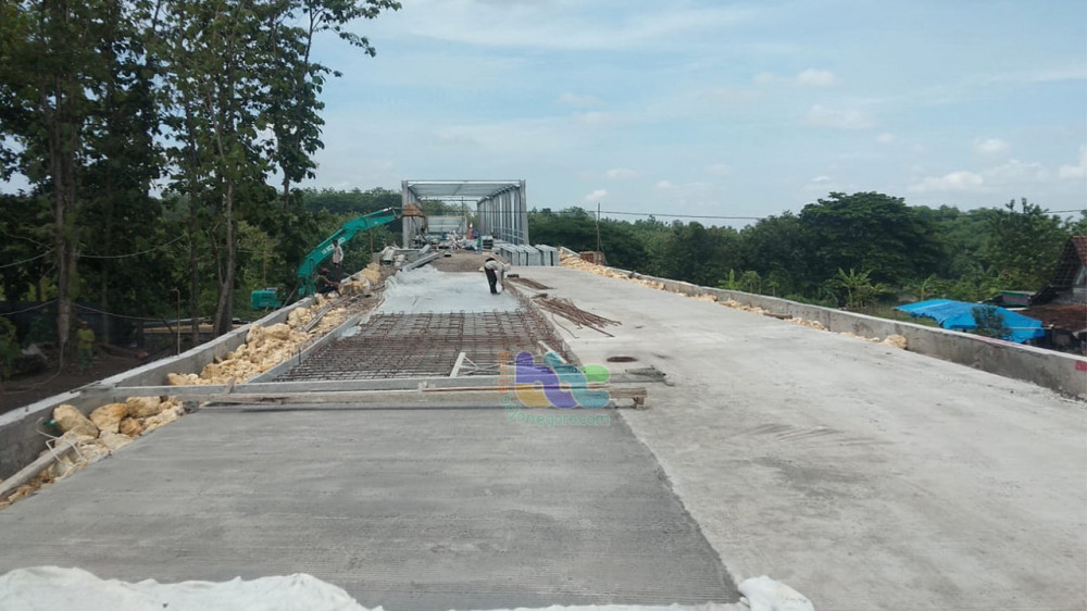 Proses pekerjaan pembangunan jembatan yang membentang di atas Sungai Bengawan Solo tersebut saat ini terus digenjot dengan tetap memperhatikan kualitas pekerjaanya.
