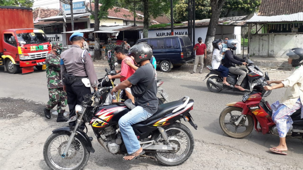 Blora - Petugas Gabungan dari Polsek Kunduran, Koramil, dan Satpol PP Kecamatan Kunduran Kabupaten Blora, pada Rabu (02/12/2020) membagikan masker kepada warga di sekitar Pasar Kunduran.