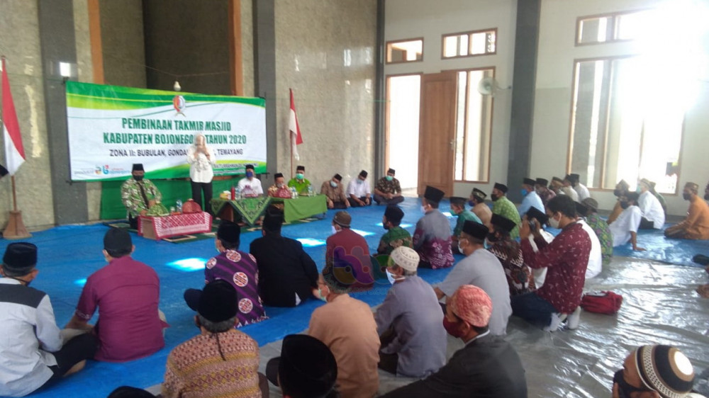 Bojonegoro - Sebagai upaya untuk meningkatkan silaturahmi antara ulama dan umara di Kabupaten Bojonegoro, Pemerintah Kabupaten (Pemkab) Bojonegoro melalui Bagian Kesra Setda Pemkab Bojonegoro, pada Sabtu (05/12/2020) menggelar Pembinaan bagi para Takmir Masjid dari Kecamatan Temayang, Bubulan, Gondang, dan Kecamatan Sekar.