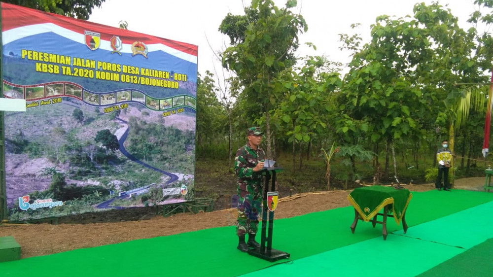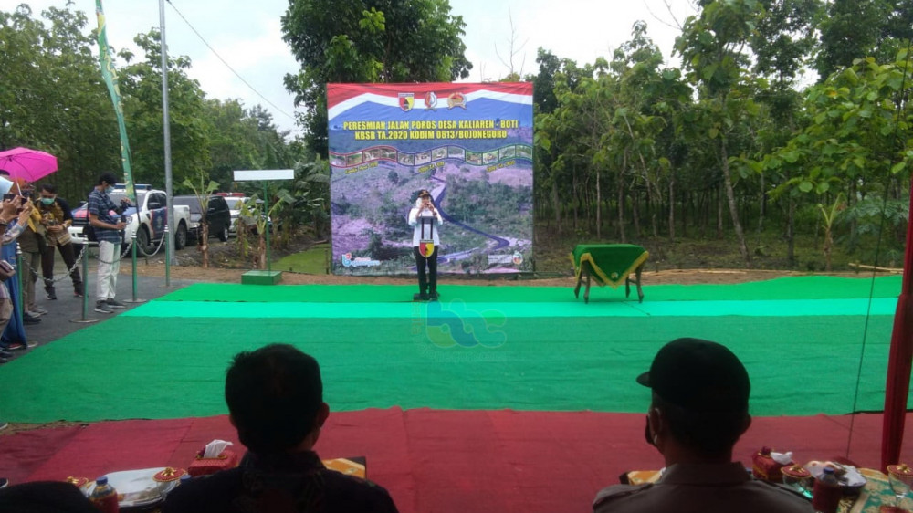Dandim Bojonegoro, Letkol Inf Bambang Haryanto,, saat beri sambutan dalam peresmian jalan Dusun Boti Desa Turi menuju Dusun Kaliaren Desa Malingmati Kecamatan Tambakrejo. Kamis (10/12/2020)