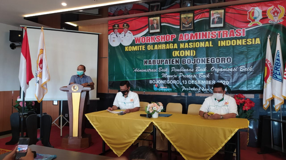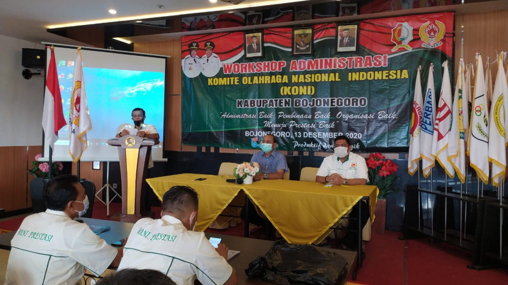 Bojonegoro - Komite Olahraga Nasional Indonesia (KONI) Kabupaten Bojonegoro, pada Minggu (13/12/2020) menggelar Workshop Administrasi bagi cabang-cabang olahraga yang menjadi anggota KONI Bojonegoro, dengan tema Administrasi Baik, Pembinaan Baik, Organisasi Baik, Menuju Prestasi Baik.