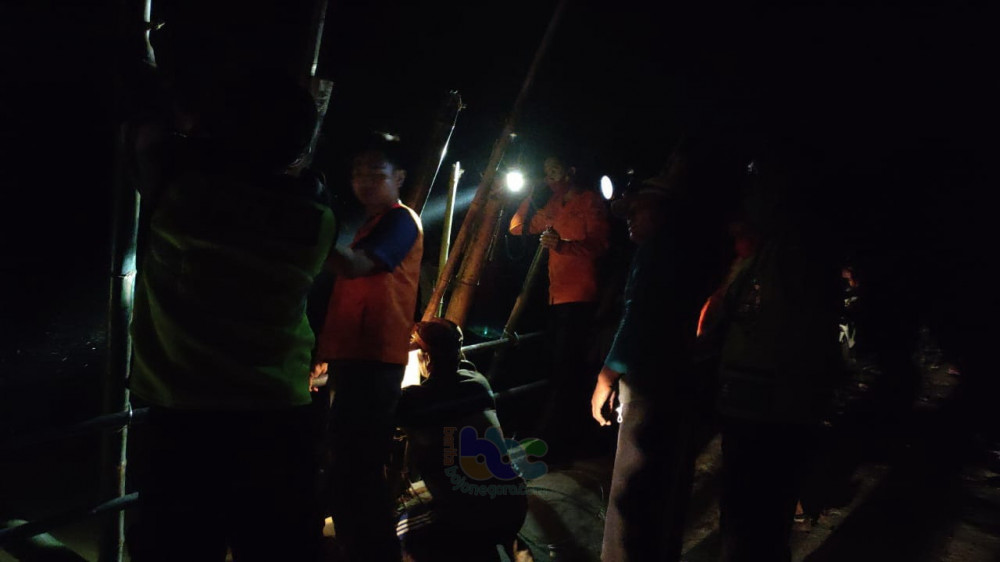 Warga masyarakat bersama aparat saat bergotong royong memperbaiki tanggul yang jebol tersebut. Senin (14/12/2020) malam. (foto: Istimewa)